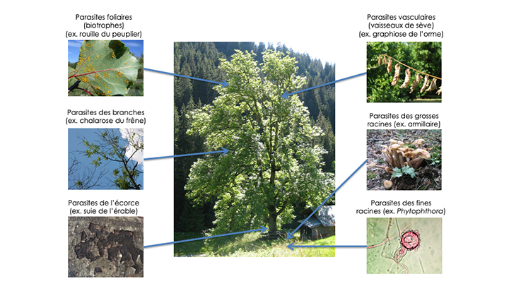 Une maladie émerge lorsque l’équilibre entre les arbres, l’environnement et les pathogènes a été rompu. Plusieurs facteurs peuvent fragiliser cet équilibre, tels que l’introduction de microorganismes via le commerce international de végétaux, celle de nouvelles variétés d’arbres ou encore le changement climatique, qui peut favoriser la dispersion géographique, c’est-à-dire la propagation vers de nouvelles régions.
